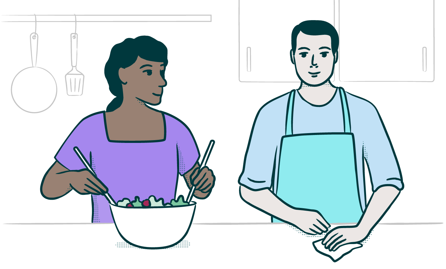 Talking to someone can be a great way to put things in perspective. Telling someone about your feelings and what’s causing you stress can help you process it logically. It can also give you a chance to ask for help completing tasks that are adding to your stress, such as cleaning or cooking. We have helpful tips on how to start the conversation.